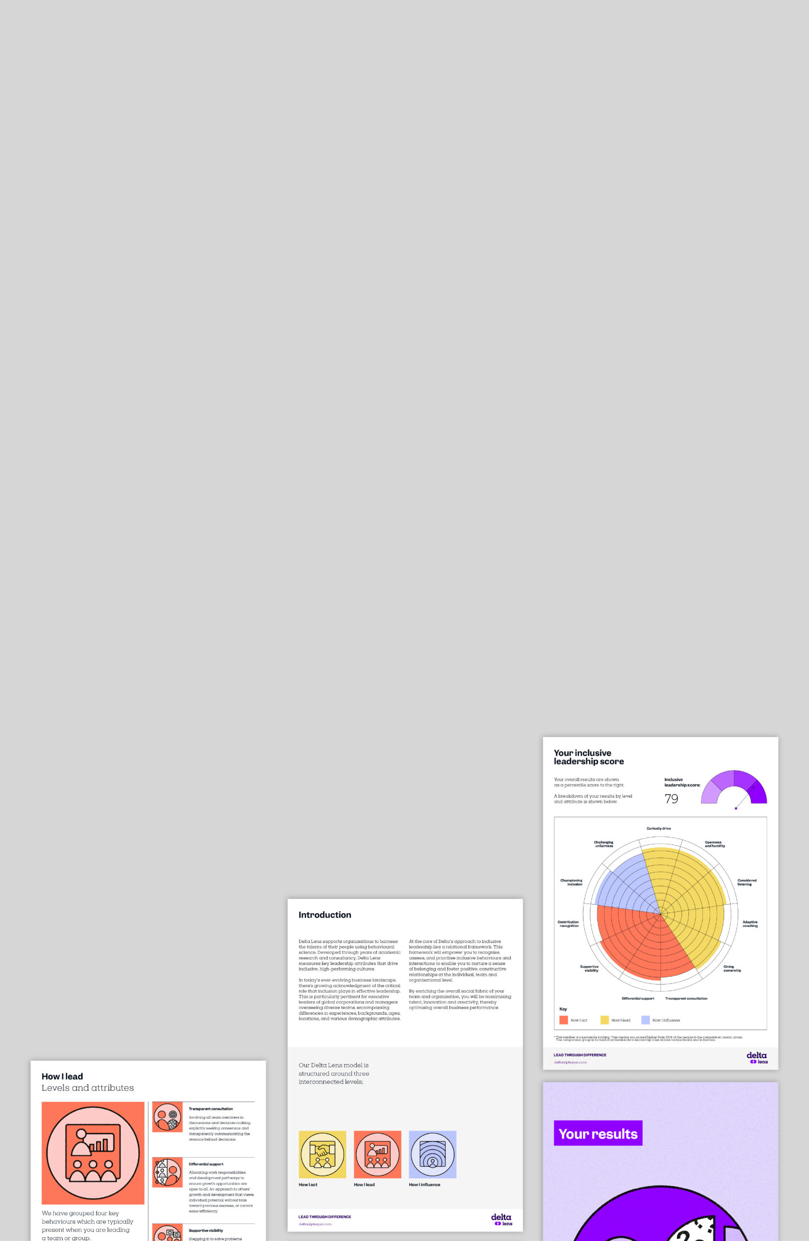It’s extremely simple and fully online. For the Delta Lens self-assessment, leaders complete an online questionnaire which typically takes 25-30 minutes to complete. For Delta Lens 360°, leaders will complete the Delta Lens self-assessment, and their coworkers will complete a shorter 10-15 minutes questionnaire. Leaders will receive clear, visual reports with practical insights they can start applying straight away.